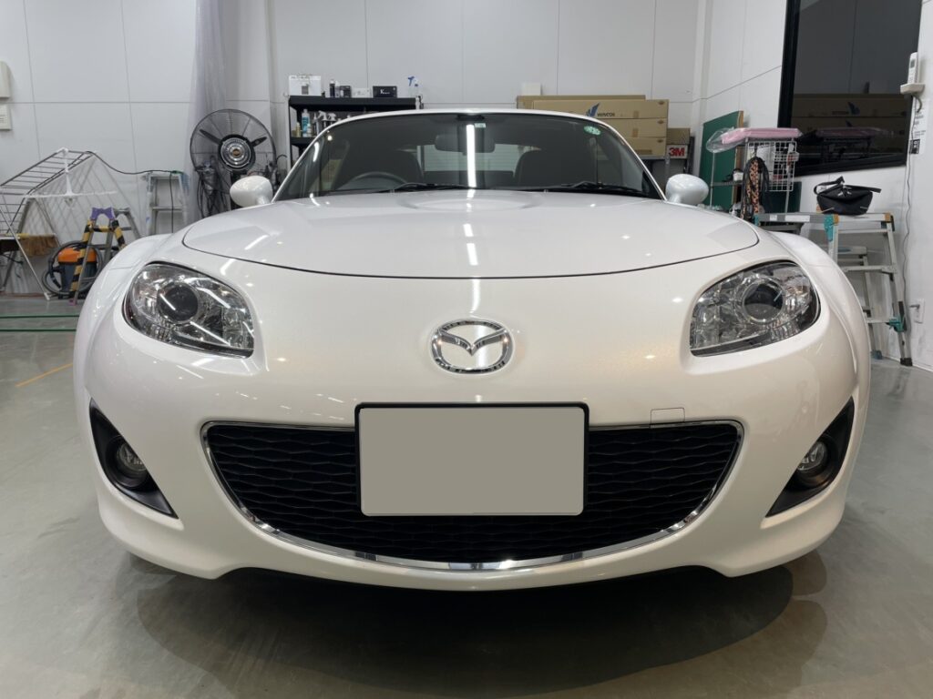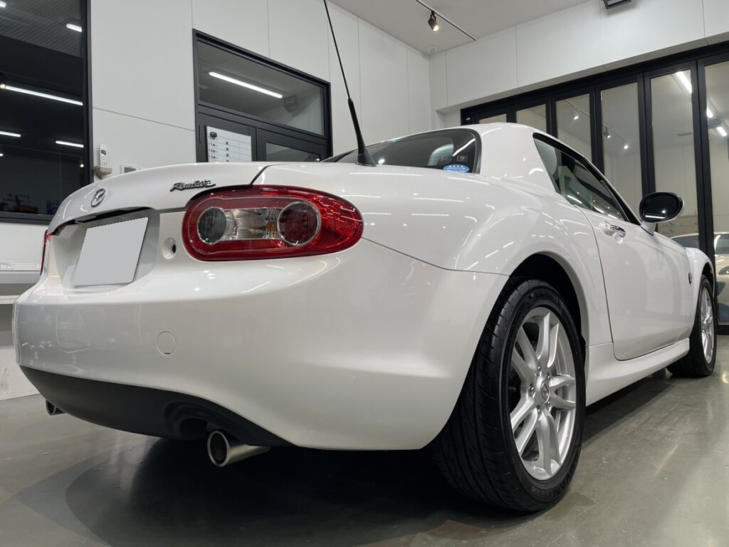 研磨して整えられたボディにコーティング施工した事で、クリスタルホワイトパールのボディがより美しくキレイに輝きました。