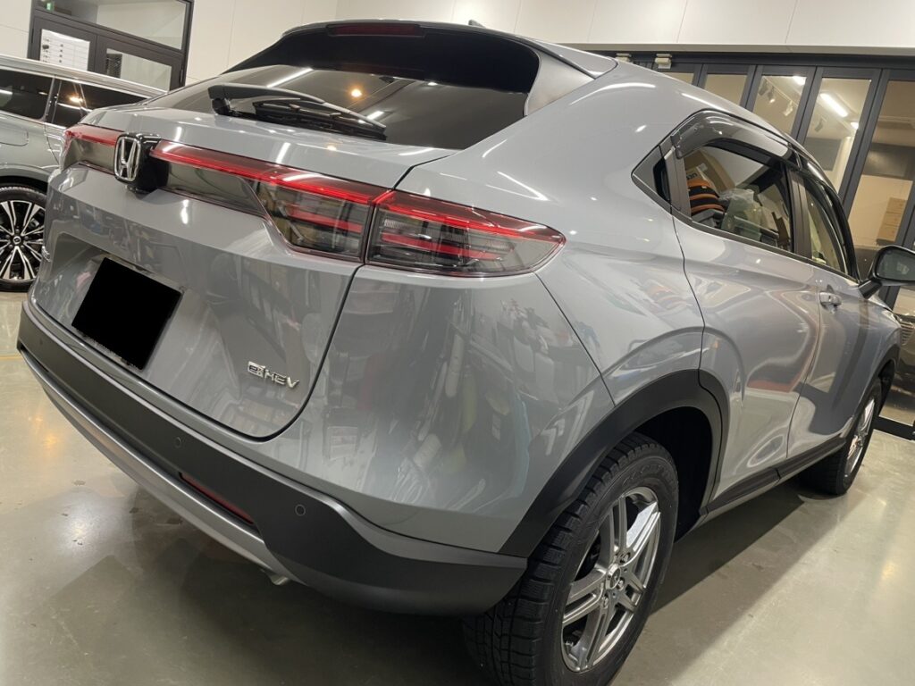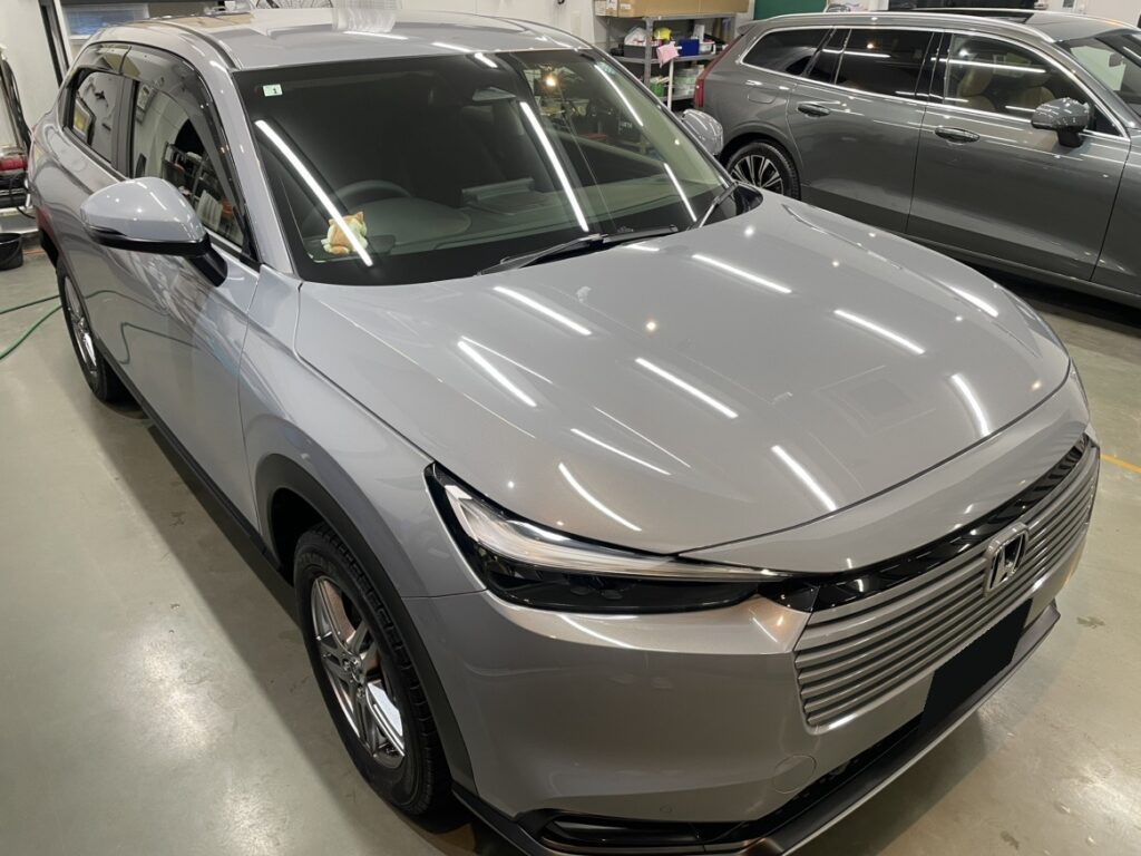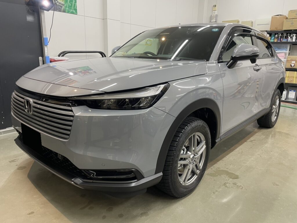 コーティング施工/施工実績 HONDA VEZEL :ボディコーティング 2026年4月2日 by greystone コーティング施工実例 車種:ホンダ ヴェゼル ボディカラー:スレートグレーパール お車の状態:新車 下地処理:ライトポリッシュ仕上げ(軽研磨) コーティング剤:Loseil Rare Metal Coat 施工日数:3日 コーティング施工完了後のお写真です。 新車でもボディを研磨して整えコーティング施工したことで、スレートグレーパール本来の美しい輝きになりました。 定期的な洗車とメンテナンスでキレイを維持して頂けたらと思います。 この度はGREY STONEにご用命頂きありがとうございました。