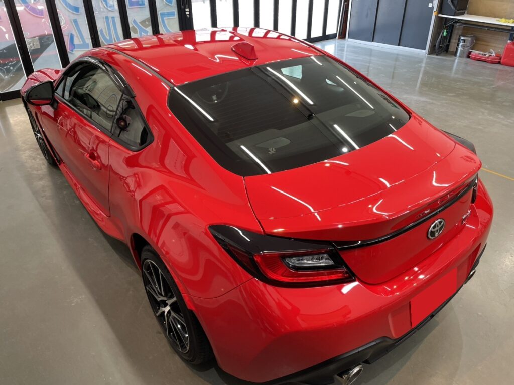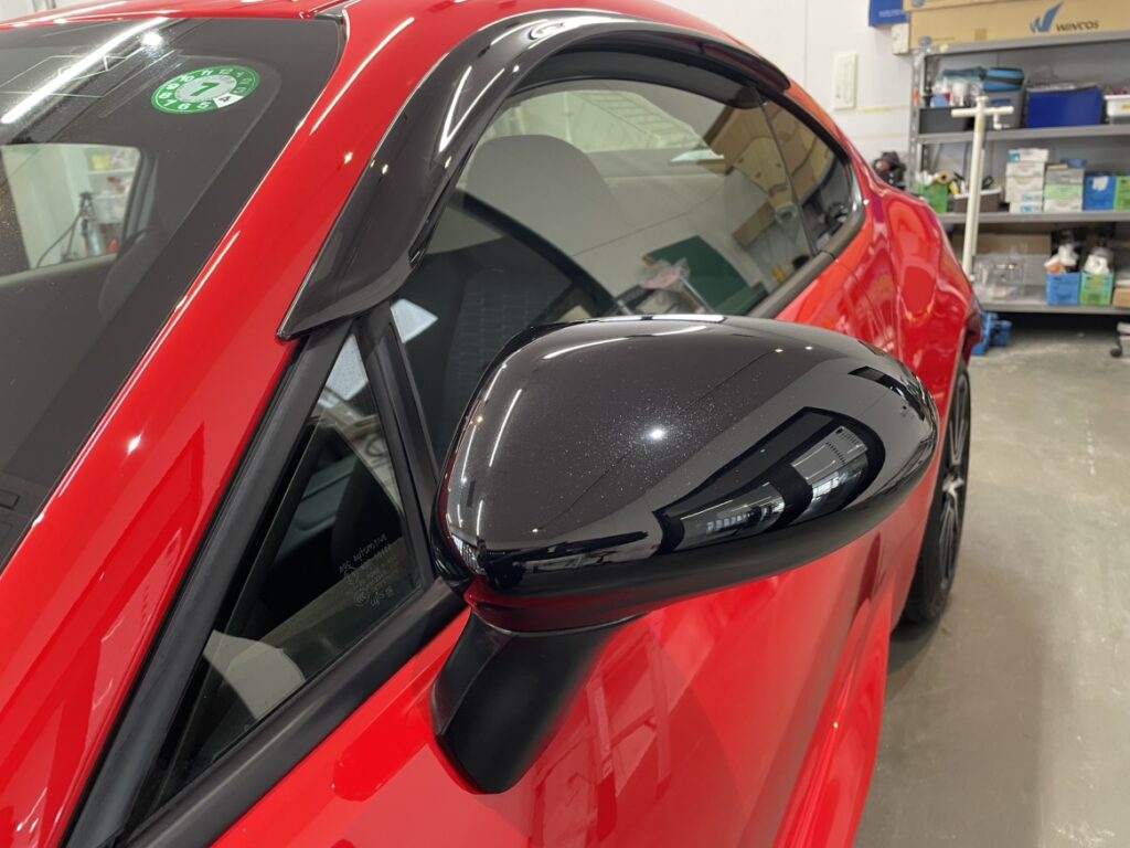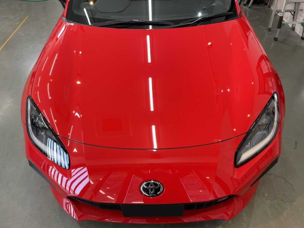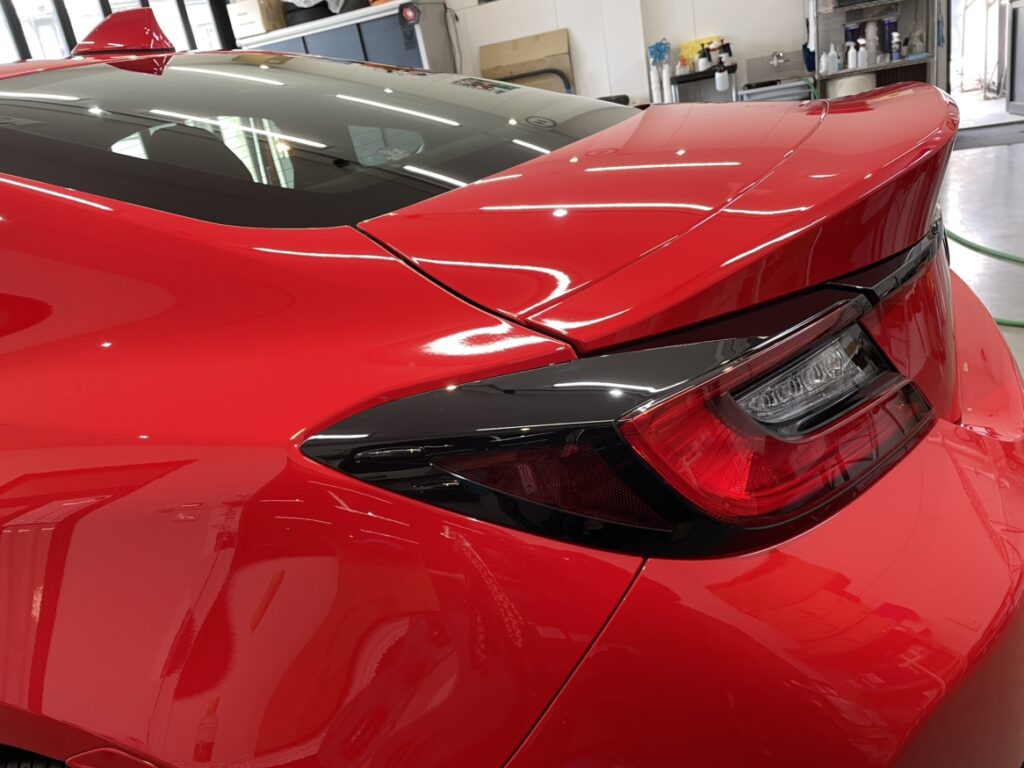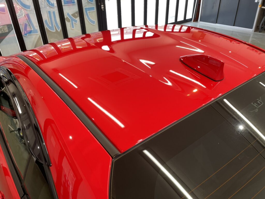 コーティング施工したことでボディの艶も上がりライトニングレッドの本来の色合いに輝きました。
